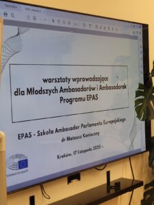 W poniedziałek 17 listopada nasi uczniowie wyruszyli do Krakowa, aby wziąć udział w szkoleniu dla młodszych ambasadorów programu EPAS. Trójka reprezentantów naszej szkoły – Wiktoria.