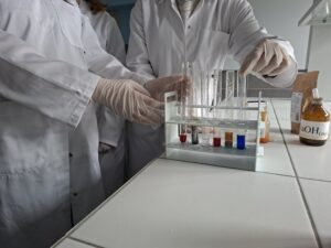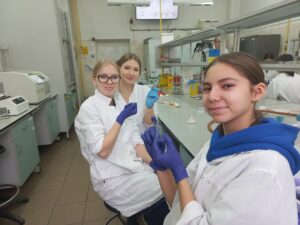 Podczas zajęć z chemii uczniowie IV b zweryfikowali wiedzę teoretyczną z cukrów i aminokwasów z zadaniami arkuszy maturalnych i potwierdzili ją w szkolnym laboratorium chemicznym..