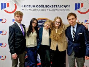 13.04.2026 nasz Samorząd Uczniowski uczestniczył w IV Dąbrowskim Forum Samorządów Uczniowskich w Pałacu Kultury Zagłębia. Uczniowie wzięli udział w Q&A z Prezydentem Miasta Dąbrowy Górniczej.