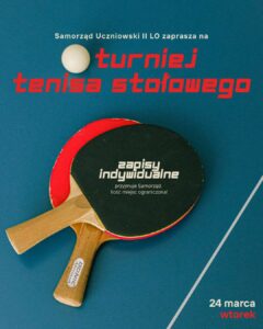 Samorząd uczniowski zaprasza 24 marca 2026 r. na turniej tenisa stołowego a 26 marca 2026 r. na turniej koszykówki.