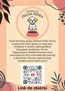 Uczennice klasy 4D :Anna CzajaAnna KołodziejczykBlanka DrozdowskaJulia Dudekrealizują projekt ,,Operacja pełna miska''w ramach Olimpiady Zwolnieni z Teorii. Celem projektu jest pomoc dla zwierząt w schronisku.