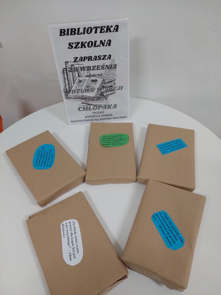 Z okazji Dnia Chłopaka nasza biblioteka szkolna przygotowała dla uczniów wyjątkową niespodziankę. Każdy, kto tego dnia odwiedził bibliotekę, mógł wypożyczyć książkę-niespodziankę – zapakowaną tak, aby tytuł pozostał tajemnicą. Akcja cieszyła się dużym zainteresowaniem – wielu uczniów z uśmiechem i ciekawością sięgnęło po literacką „niespodziankę”. Była to świetna okazja, by w niecodzienny sposób zachęcić do czytania oraz pokazać, że książka to także doskonały prezent. Dziękujemy wszystkim, którzy wzięli udział w zabawie i życzymy wielu literackich przygód odkrywanych na kartach książek!