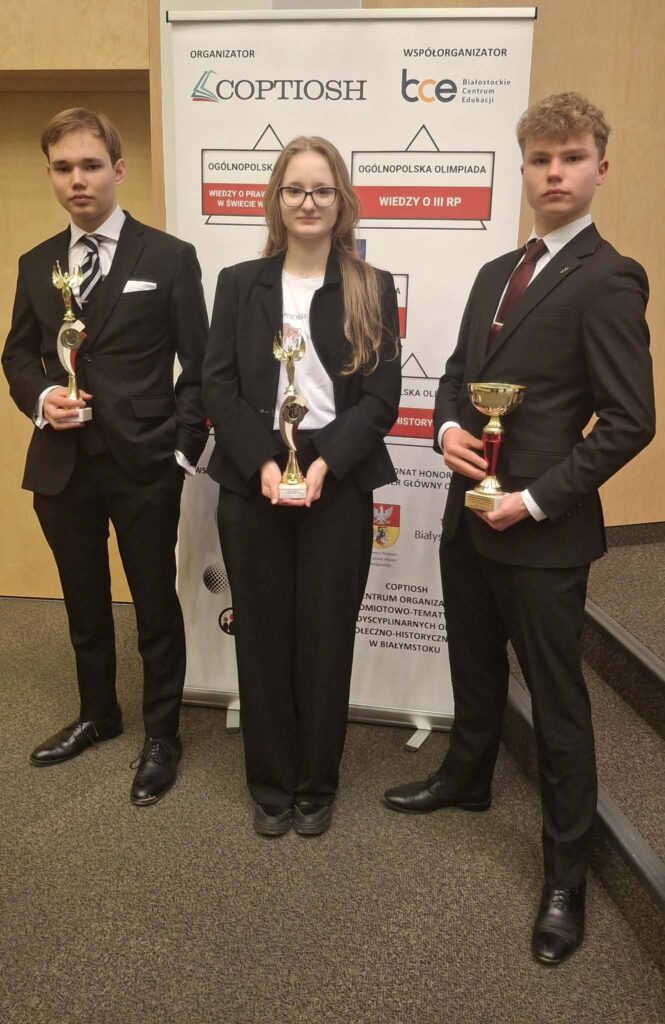 tytuł finalisty stopnia centralnego Olimpiady Wiedzy o III RP, który odbył się dzisiaj w Białymstoku.