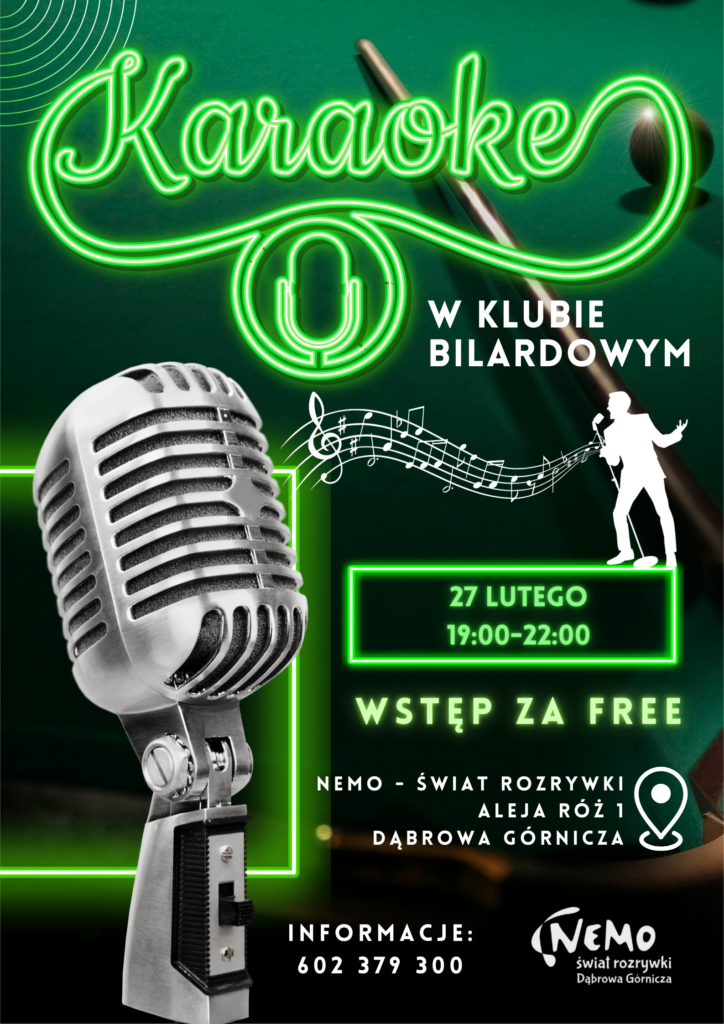 27 lutego w godzinach 19:00–22:00 zapraszamy do Klubu Bilardowego w Nemo.