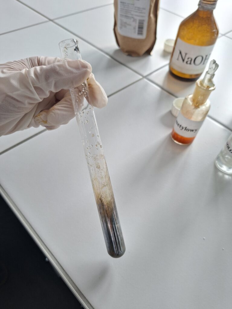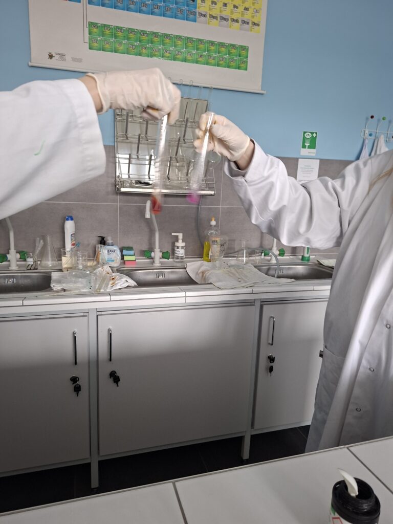 Podczas zajęć z chemii uczniowie IV b zweryfikowali wiedzę teoretyczną z cukrów i aminokwasów z zadaniami arkuszy maturalnych i potwierdzili ją w szkolnym laboratorium chemicznym. Uzyskane wyniki doświadczeń z pewnością zostaną już dobrze zapamiętane, … przynajmniej do matury