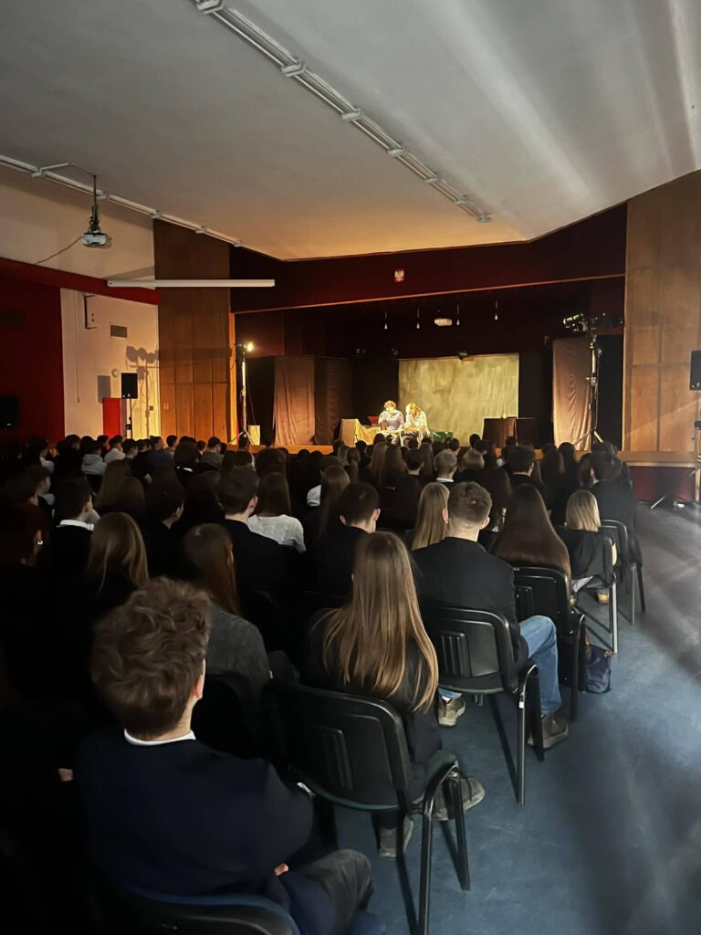 13 lutego 2026 r. klasy pierwsze uczestniczyły w spektaklu profilaktycznym „S@motni w tłumie” w Teatrze Profilaktycznym w TZN. Przedstawienie w mocny i poruszający sposób pokazało, czym jest samotność – ta cicha, niewidoczna, ukryta za uśmiechem, ekranem telefonu czy obecnością w grupie. Uświadomiło, że można być wśród ludzi, a jednocześnie czuć się zupełnie samemu. Spektakl zwracał uwagę na potrzebę bliskości, rozmowy i zauważania drugiego człowieka.