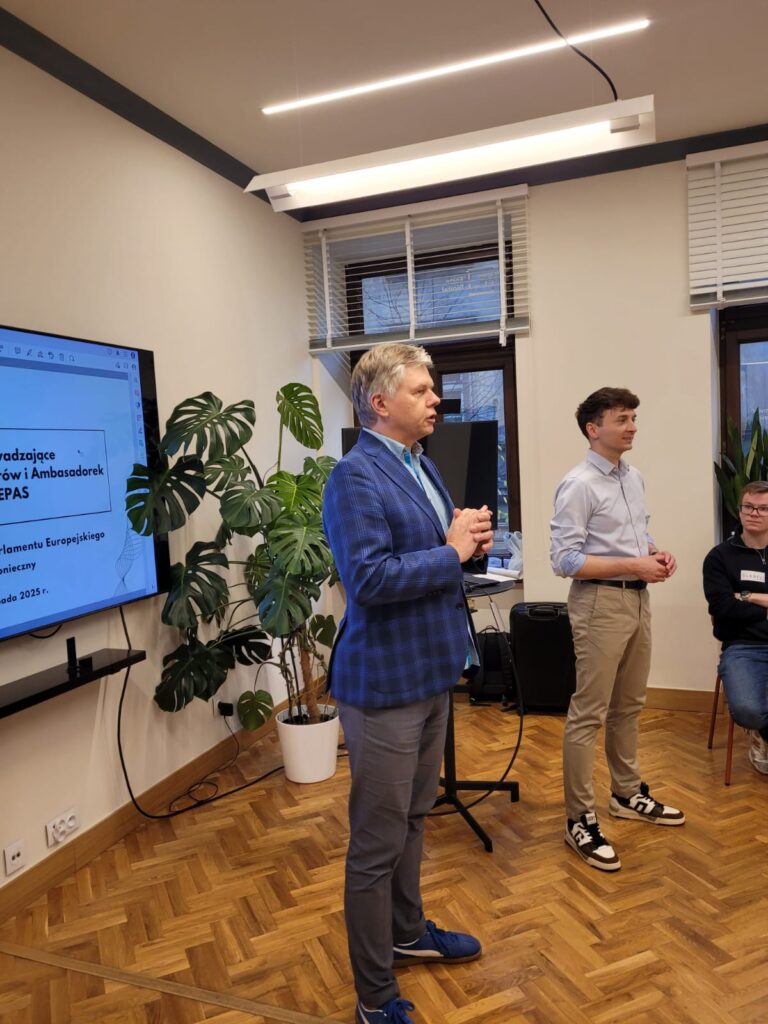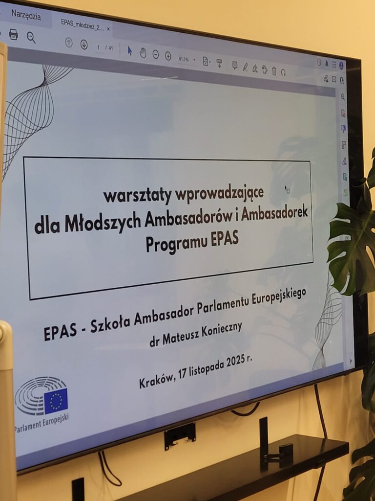 W poniedziałek 17 listopada nasi uczniowie wyruszyli do Krakowa, aby wziąć udział w szkoleniu dla młodszych ambasadorów programu EPAS. Trójka reprezentantów naszej szkoły – Wiktoria Polańska, Nataniel Rak i Michał Magdziarz – dołączyła do delegacji uczniów z innych szkół średnich.