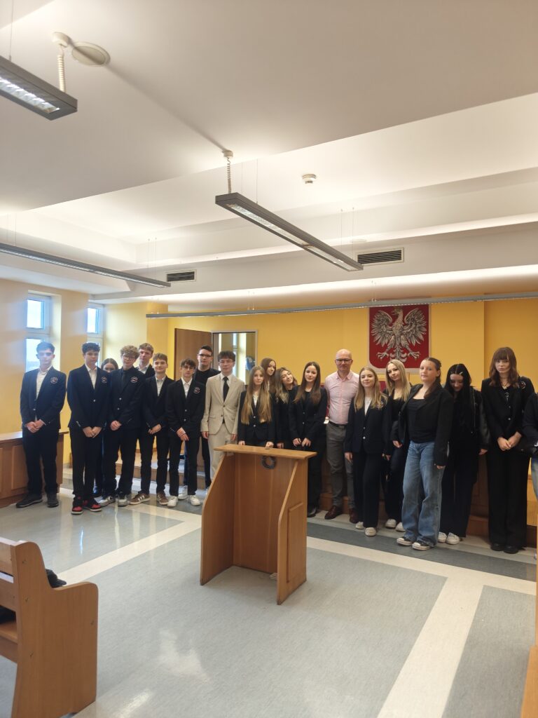 Uczniowie klasy 1c oraz 3c, którzy rozszerzają wiedzę o społeczeństwie, mieli przyjemność uczestnictwa w zajęciach w Sądzie Rejonowym w Dąbrowie Górniczej w ramach obchodów Dnia Edukacji Prawnej. Młodzież wzięła udział w spotkaniu w sędzią II Wydziału Karnego oraz I Wydziału Cywilnego tutejszego Sądu oraz, w roli publiczności, w dwóch rozprawach sądowych z zakresu prawa karnego . To była wyjątkowa lekcja wosu i przy okazji powtórka zagadnień z prawa. Serdecznie dziękujemy za poświęcony czas i wprowadzenie nas w tajniki zawodu sędziego!