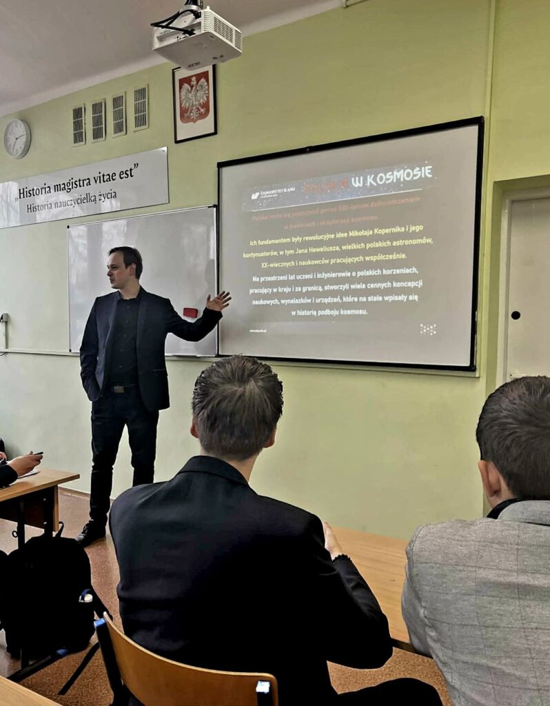 13 kwietnia 2026 r. mieliśmy ogromną przyjemność gościć dr Łukasza Wielgosza z UŚ, który zabrał nas w fascynującą podróż poza granice naszej planety! Wykład pt. „Polska w kosmosie – przemysł kosmiczny i działania Polskiej Agencji Kosmicznej ze szczególnym uwzględnieniem Województwa Śląskiego” pokazał nam zupełnie nowe oblicze przyszłości – takiej, która dzieje się tu i teraz! 💫